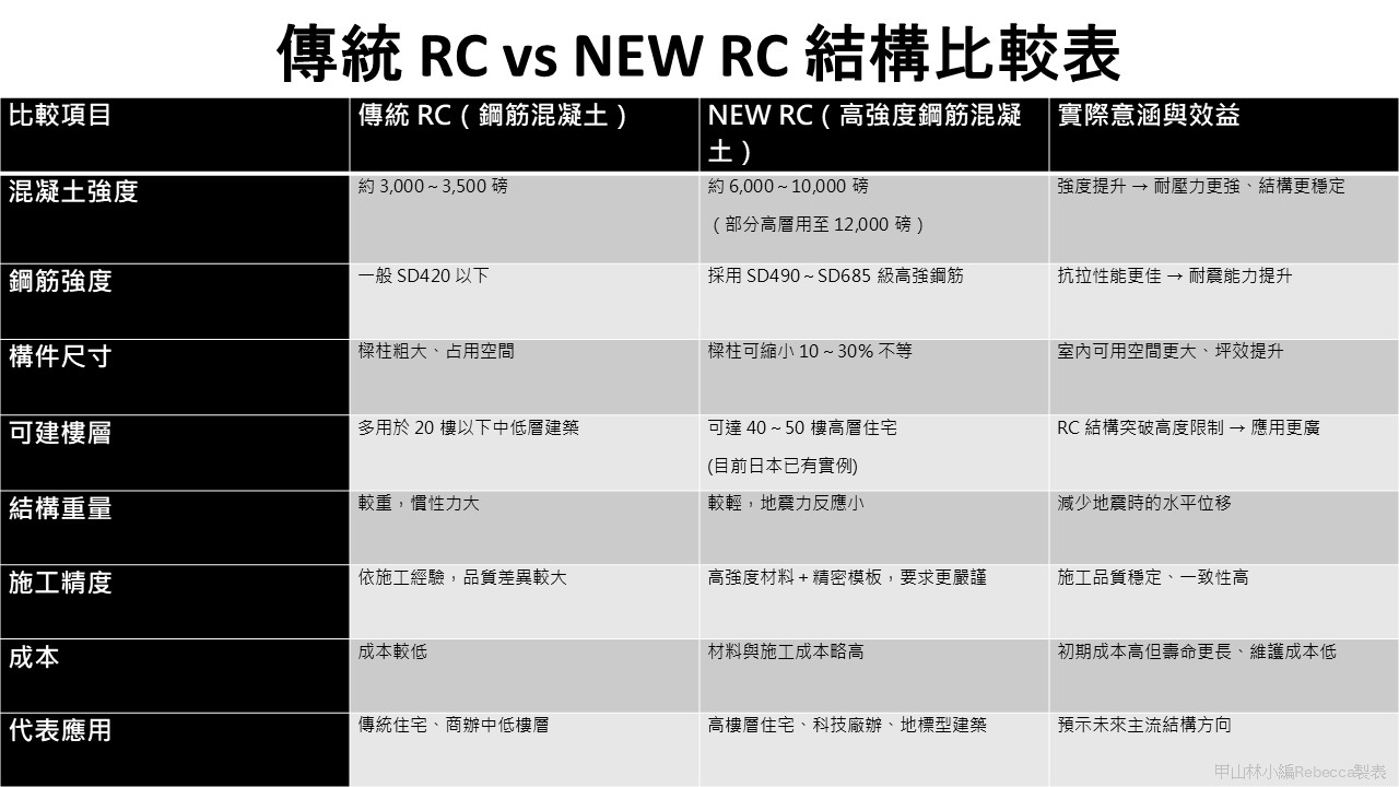 • 日本已有 RC 高樓實例達 50 樓以上,但台灣普遍住宅樓層受多因素制約,此為技術可行性而非所有建案皆達成。