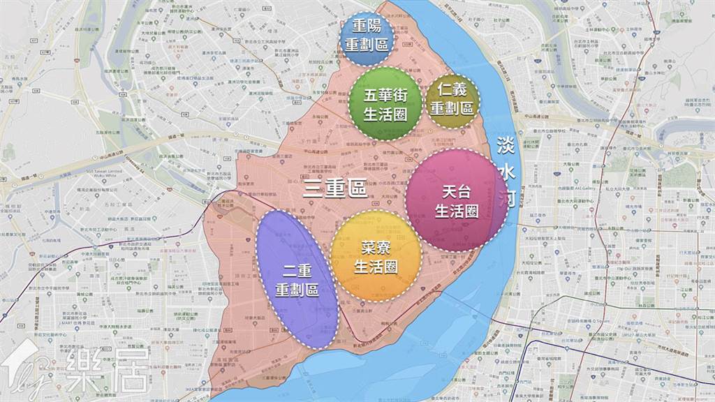 三重除了既有的菜寮、天台、五華等成熟生活圈,更關鍵的是三大重劃區陸續成形: