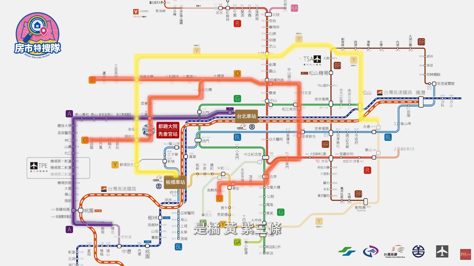 ▶ 三條捷運:橘線、環狀線、桃園機捷
